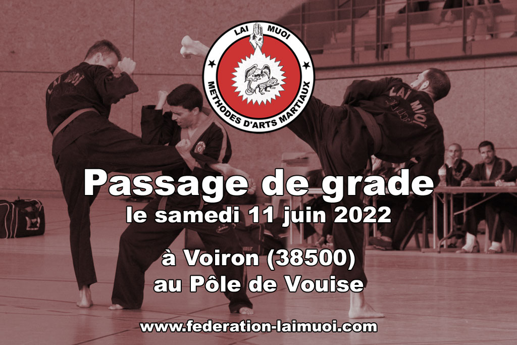 Le passage de grade fédéral de Laï-muoï de la saison 2021-2022, a eu lieu au Pôle de Vouise à Voiron (25, avenue du 8 Mai 1945, 38500 Voiron), le samedi 11 juin 2022 de 8h00 à 19h00.